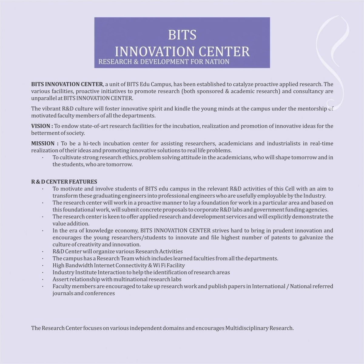 TO UPLIFT GLOBALLY THE YOUNG-BRAINS WITH COMPREHENSIVE KNOWLEDGE & INNOVATIVE SKILLS.
