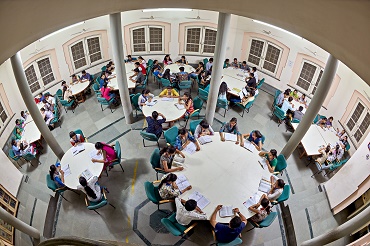With a key focus on developing a self-sustained residential campus, Hostel facility is provided with separate accommodation for Male and Female students, with fully furnished AC and Non AC (2 bed & 3 bed) rooms having attached bath, balcony and a common Dining Hall as well as Audio-Visual Lounge.