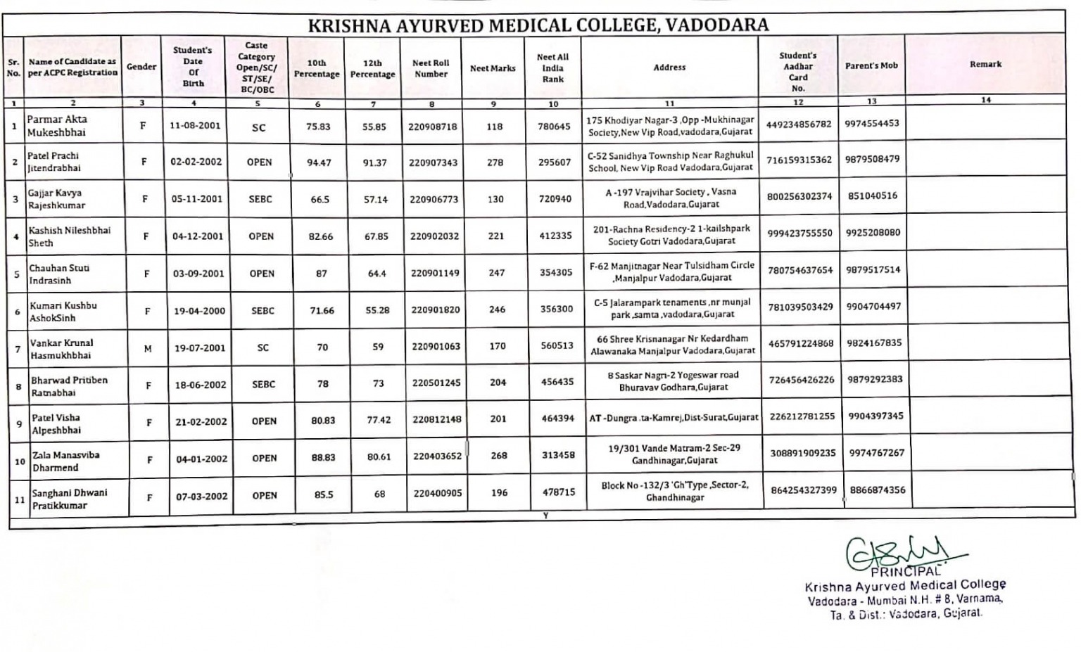 | 162 | Shukla Krunalkumar Ashokkumar | ME | 2013 | Further studies |